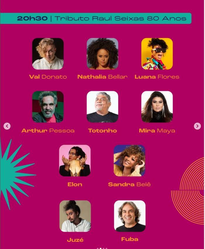 Após a exibição, às 21h, terá um tributo musical com dez artistas paraibanos, e às 22h, Paula Chalup e Vivi Seixas, filha de Raul Seixas, trazem pela primeira vez à Paraíba o ‘Rock das Aranhas Show Live’, com músicas revisitadas do eterno ‘maluco beleza’.