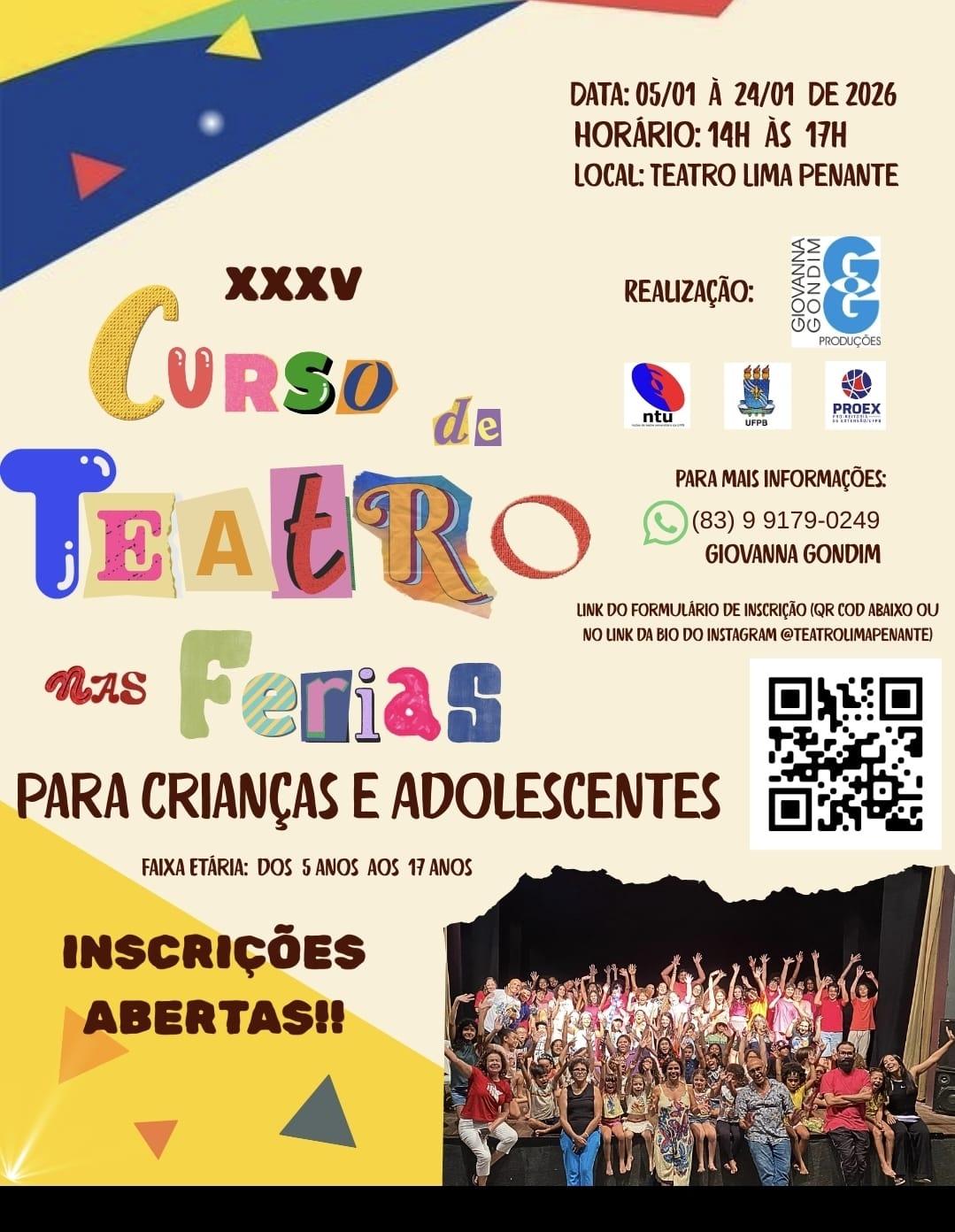 O Teatro Lima Penante fica na Av. João Machado, 67 (ao lado da Igreja de Lourdes) e as inscrições para já estão abertas. Mais informações: (83) 99179-0249.