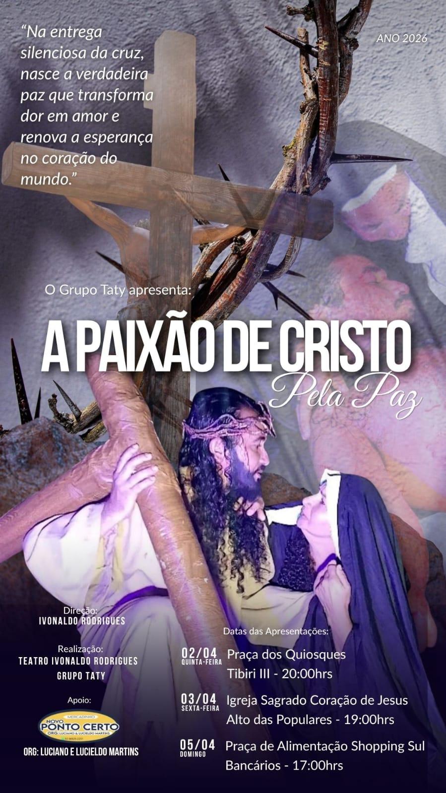 O espetáculo é intitulado "A Paixão de Cristo Pela Paz", numa montagem do Grupo Taty de Tibiri. "São quarenta e dois anos de resistência com apresentações em cidades como: Santa Rita, Bayeux, Pedras de Fogo, Mamanguape, Cuitegi, Serraria, São José dos Ramos, Mulungú, Natuba, Cabedelo, João Pessoa entre outras. Considerada uma das mais antigas do Estado da Paraíba é uma iniciativa de Ivonaldo Rodrigues e é mencionada no Histórico livro de Chico Pereira: "Paraíba Memória Cultural", além de ser apresentada no antigo palco do Sesc nos anos 90", destacou Ivonaldo Rodrigues.