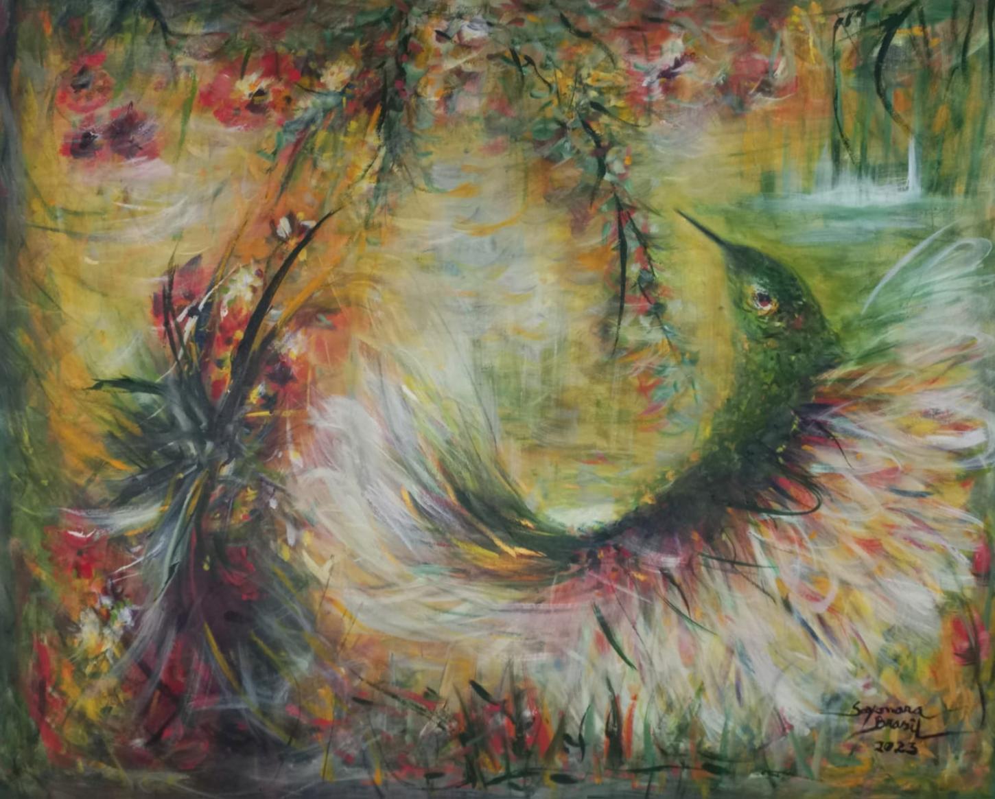 A obra de Sayonara se enquadra nesse contexto por ser marcada pela observação da natureza, pelo uso de cores vibrantes e por uma abordagem que combina sensibilidade ecológica e expressão contemporânea. A artista é natural da Bahia, mas está radicada na Paraíba há 40 anos, onde desenvolve seu trabalho nas artes visuais e circula por vários países do mundo mostrando sua arte.