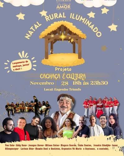 O Natal Rural Iluminado começa nesta sexta-feira (28), a partir das 18h, no Engenho Triunfo, em Areia-PB, e terá como destaque da noite o show de Santanna, o Cantador, que sobe ao palco às 22h. O evento marca a abertura oficial das celebrações natalinas da Associação de Turismo Rural e Cultural de Areia, Atura, que integra a rota turística do Brejo Paraibano.