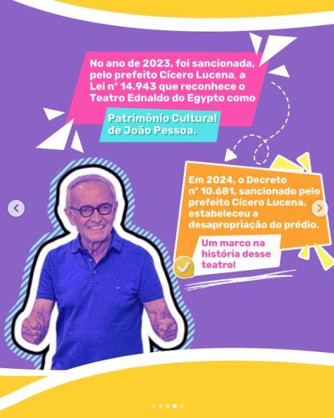 Em suas redes sociais, a secretária América de Castro comentou: "Essa efetuação da compra do Teatro Ednaldo do Egypto representa um marco histórico para a cultura da capital paraibana. Estamos nos referindo a um espaço que simboliza resistência, democracia cultural e acesso à arte, especialmente para aqueles que sempre encontraram nesse teatro um lugar de acolhimento, voz e expressão".